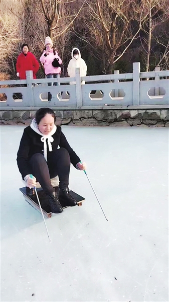 节前几天,张女士回家发现家里多了两个木匠。“也不知道父子俩从哪儿捡来的木板、木棍,地上有斧头、锯子、钉子。”张女士说,进家以为走错地方了。儿子说,与同学到西山的桃花沟玩,那儿有好几个冰场,别人都有冰车,玩得特别爽,他也要做一个。一切妥当,一家人扛起自制冰车,直奔万柏林区小虎峪村后山的桃花沟。