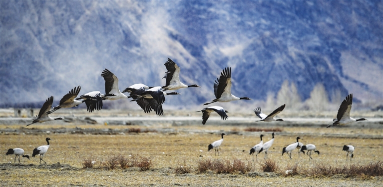 近年来,随着国家加大青藏高原生态保护力度,西藏多措并举实施生态建设,广大农牧民群众保护野生动物的意识不断提升,黑颈鹤及其栖息地得到了较好的保护,黑颈鹤数量逐年递增。 新华社 发