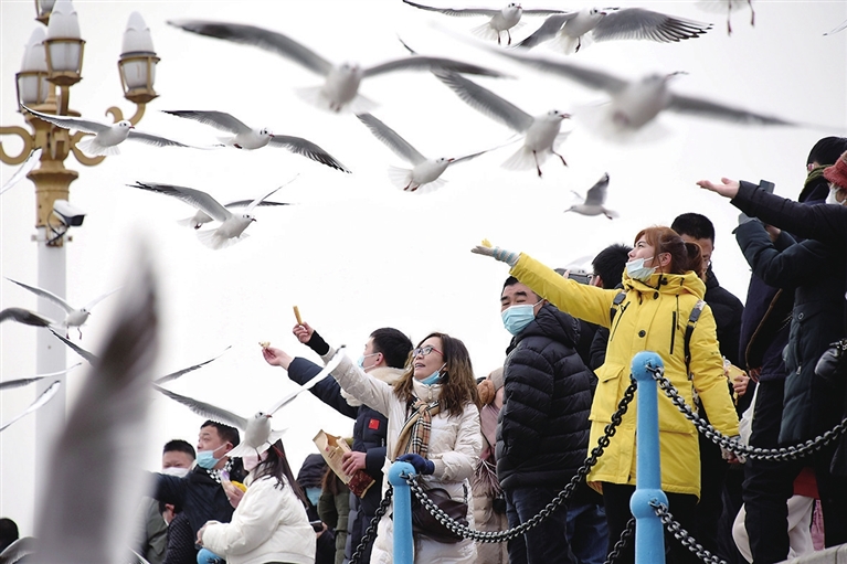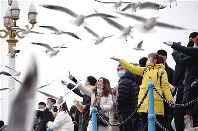 春节假期赏海鸥是众多青岛市民的“保留节目”。据了解,从1994年青岛启动“挽留海鸥行动”以来,当地海岸生态环境不断改善,人们爱护动物的意识也在逐步增强。目前,来青岛的海鸥种类已达20多种,数量超过10万只。 新华社 发