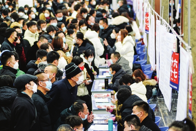 1月29日,太原人才大市场举办新春首场招聘会,百余家单位提供了4000余个岗位,吸引了众多求职者前来应聘。记者 牛利敏 摄