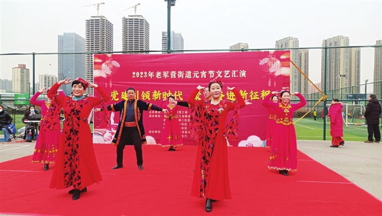 优美的舞蹈跳起来,欢快的快板打起来,威武的祥龙舞起来……2月2日,汾河景区篮球场里,老军营街道党工委组织的“党建引领新时代 聚力奋进新征程”元宵节文艺活动正在上演,丰富了居民的节庆活动。 侯慧琴 金莹 摄