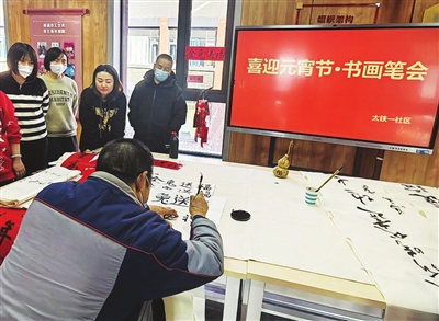 2月1日上午,敦化坊街道太铁一社区在社区党群服务中心三层举办了“喜迎元宵节·书画笔会”活动。辖区的书法爱好者挥毫泼墨,字体或苍劲有力,或俊逸秀美。这场书法盛宴精彩纷呈,令在场居民拍手称赞。 袁剑锋 原茜 摄