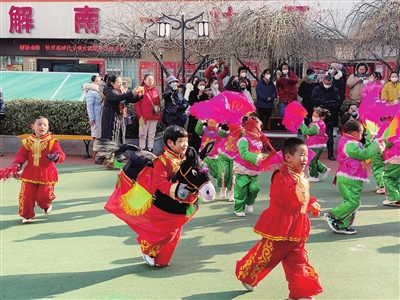 2月3日上午,迎泽街道解放南路一社区新时代文明实践站联合辖区驻地单位苗艺幼儿园,开展“萌娃闹元宵 非遗赶庙会”元宵节活动。在家门口围观这场萌萌的“闹红火”,居民们感受到别样的节日乐趣。 侯慧琴 苏丹丹 摄