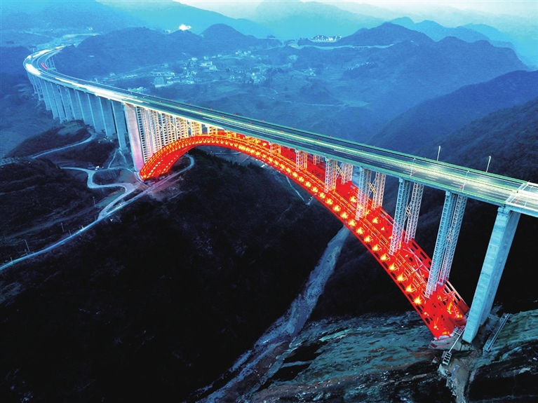 贵州遵义市大发渠特大桥全长1427米、主跨410米、桥宽33米,是仁遵高速公路的控制性工程之一。贵州被誉为“中国桥梁博物馆”,世界高桥前100名中,近一半在贵州,一座座架设在高山峡谷间的世界级大桥,让天堑变通途。 新华社 发