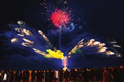 2月4日,正月十四晚。小店区刘家堡村“第二届堡里有年味,回家过大年”新春活动进入高潮,数万名游人在堡里赏花灯、看表演、观架火,欢庆喜乐祥和的元宵佳节。 记者 宿晓健 摄