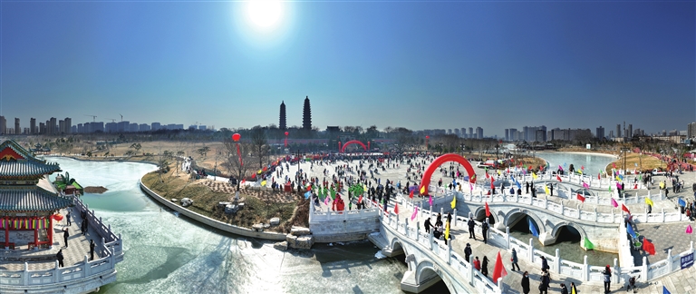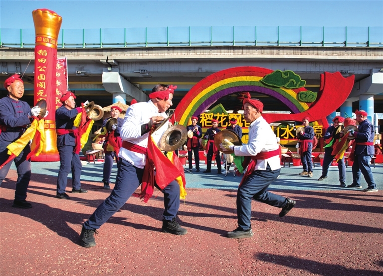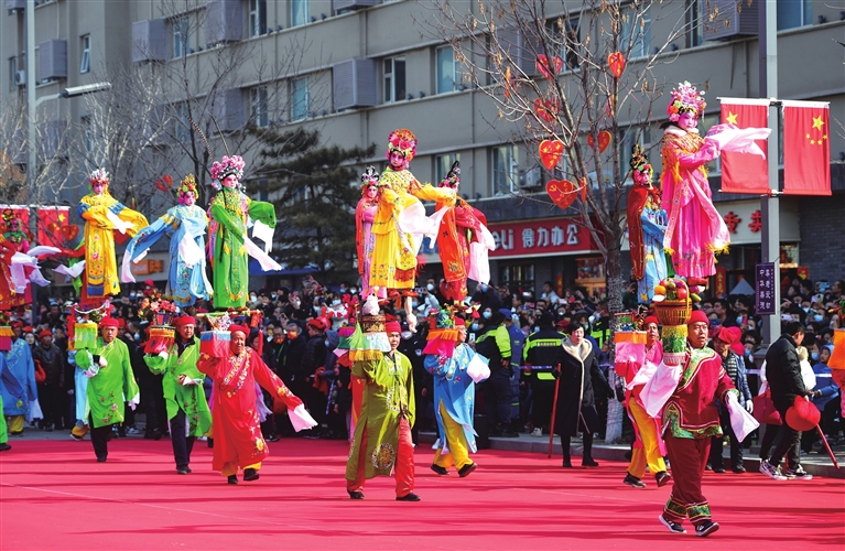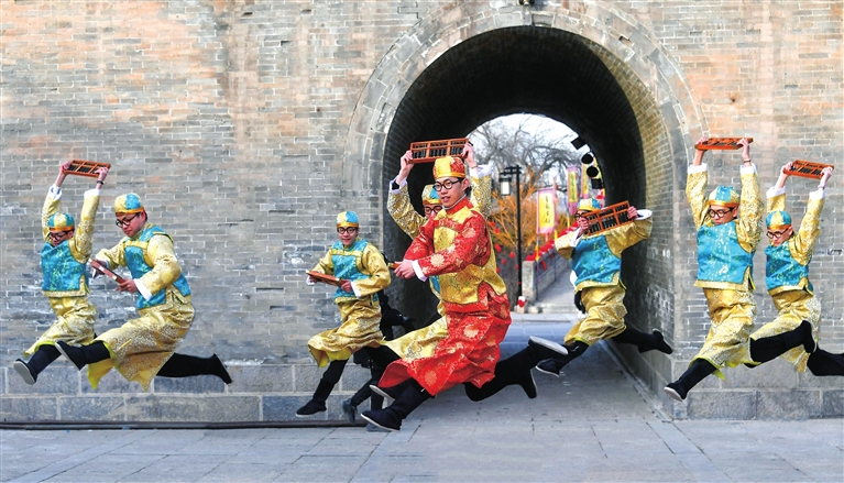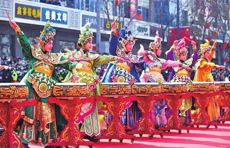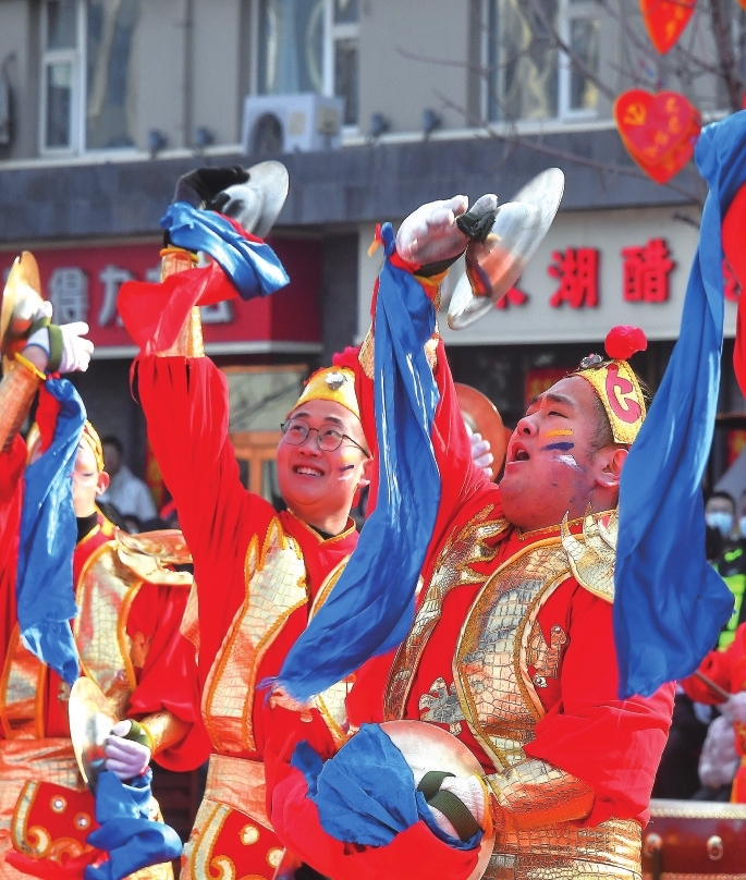午后,热闹开启。社区街道、古城公园,人们歌舞翩翩,欢快迎春。红火的锣鼓,点缀了世间华彩。