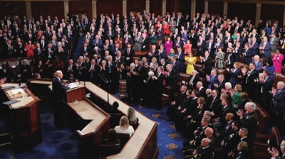 这与前任共和党籍总统唐纳德·特朗普2020年最后一次发表国情咨文时形势相似:总统和参议院多数党同属一党,对立党派掌控众议院。三年过去,府院之间、国会两院党派争斗愈演愈烈。