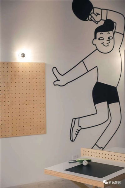 最令姚彦自豪的,是她亲手布置的咖啡休闲区。咖啡桌本身就是一张异形球台,台面画有抽象的乒乓图案。坐下来喝杯咖啡,透过一块明亮的落地玻璃,能看到馆里打球的场景。“我自己打球时就喜欢有观众的感觉,我相信很多人都是这么想的。”许昕说,“透过这面玻璃,无论对于观众还是运动者来说,都是非常享受的。”