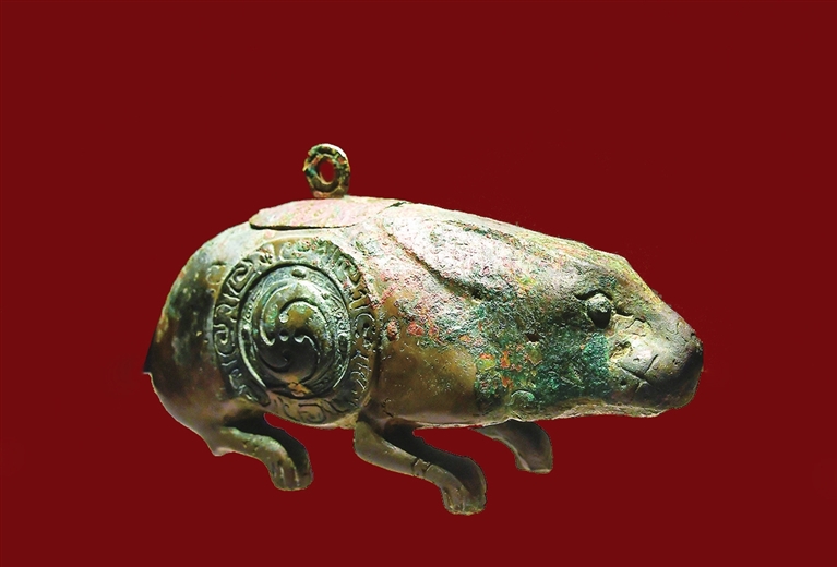 展览分三个单元。第一单元“形”,讲述兔的动物形象,展出了商周玉兔、青铜兔尊、兔形车辖軎等文物。