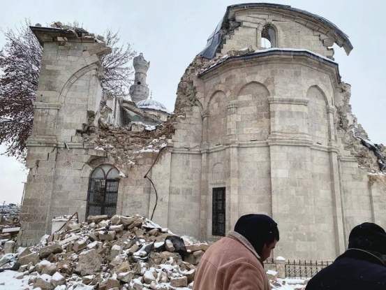 土耳其南部城市马拉蒂亚市中心的耶尼清真寺也遭到严重损毁,这座清真寺历史上曾经多次受到地震破坏。
