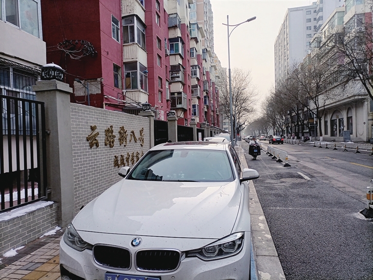 汽车停在人行便道上,占据了一大半路面,过往的行人只能侧着身子通过。这一幕,出现在云路街8号院门外。据小区居民说,总有车辆这样停放,甚至还停在专为自行车划定的蓝色停车区里,希望相关部门尽快规范这类停车行为。 李涛 摄