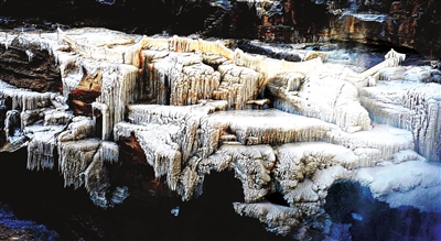 走进冬日的壶口,仿佛走进一个冰雪世界。一排排冰凌柱层层叠叠倒挂在壶口两岸的悬崖陡壁上,异常壮观。 丹 阳 摄