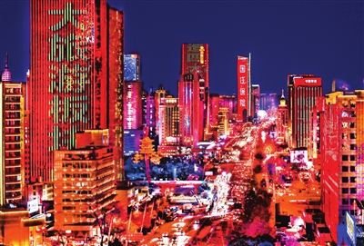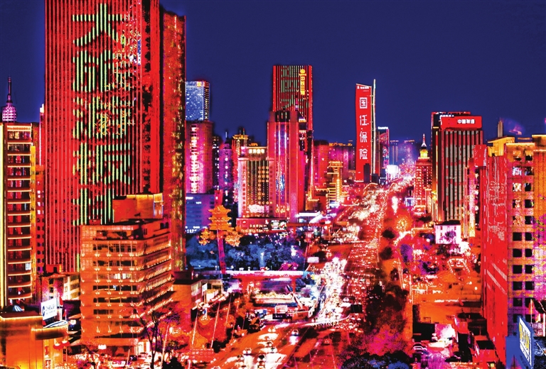 2月13日晚,省城街头处处流光溢彩,缤纷璀璨,火红的“喜迎中国·太原文化旅游推介招商大会召开”宣传语在斑斓中绽放,一片喜庆热烈的氛围。 王韵菲 张昊宇 摄