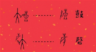“比如《诗经》中写的:呦呦鹿鸣,食野之苹。我有嘉宾,鼓瑟吹笙。‘鼓’和‘瑟’都是十分古老的传统乐器。鼓字左边的部分表示鼓本身,右边的‘攴(pū)’表示手持的工具树枝,‘鼓’字的产生就是古人画下了一个人拿着树枝在击鼓的画面。”黄小姐说。