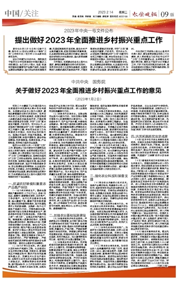 关于做好2023年全面推进乡村振兴重点工作的意见