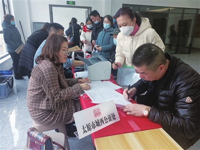 2月13日上午,漪兴南路蓝水假日小区4号楼的居民们,兴高采烈地赶到万柏林区兴华街办新悦社区,办理不动产权转移登记手续。据了解,为推动该小区产权转移登记,新悦社区积极联系各相关部门,并协调城西公证处、第三方代办及蓝水假日小区物业等,通力协作,全力推进,目前整个小区537户的不动产办理工作已全部完成。 申波 郭奕萱 摄