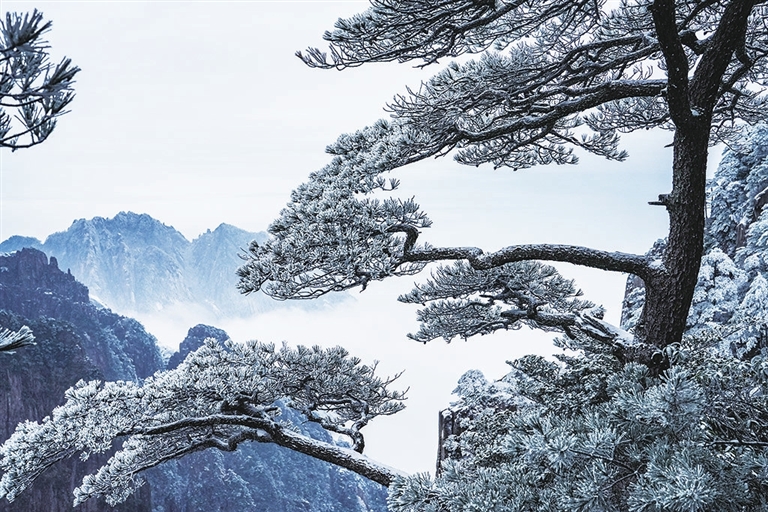 2月14日,受强冷空气影响,安徽黄山风景区气温骤降,出现了雾凇美景。