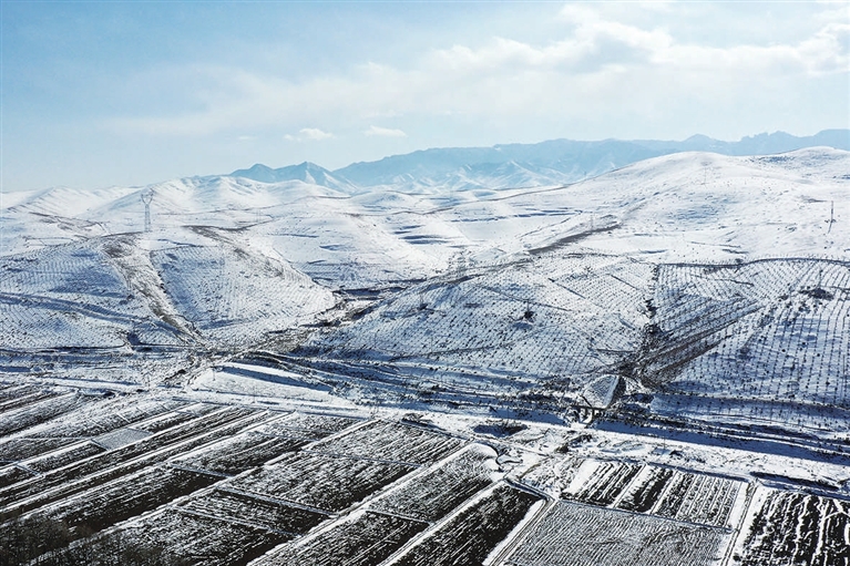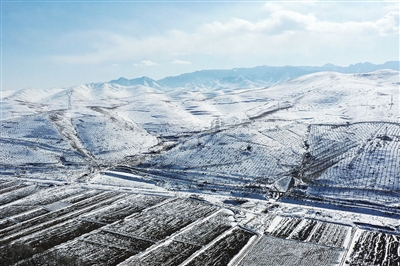 2月14日拍摄的乌鞘岭及周边雪景(无人机照片)。