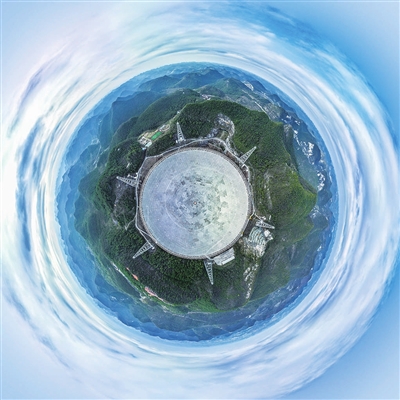 2月13日拍摄的“中国天眼”全景(维护保养期间拍摄,无人机全景照片)。 新华社 发