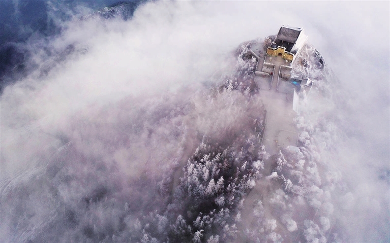 当日,湖南省衡阳市南岳衡山风景区雪后初霁,晶莹剔透的雾凇在云海里若隐若现,景色如画。 新华社 发
