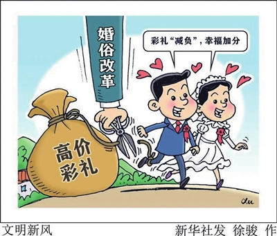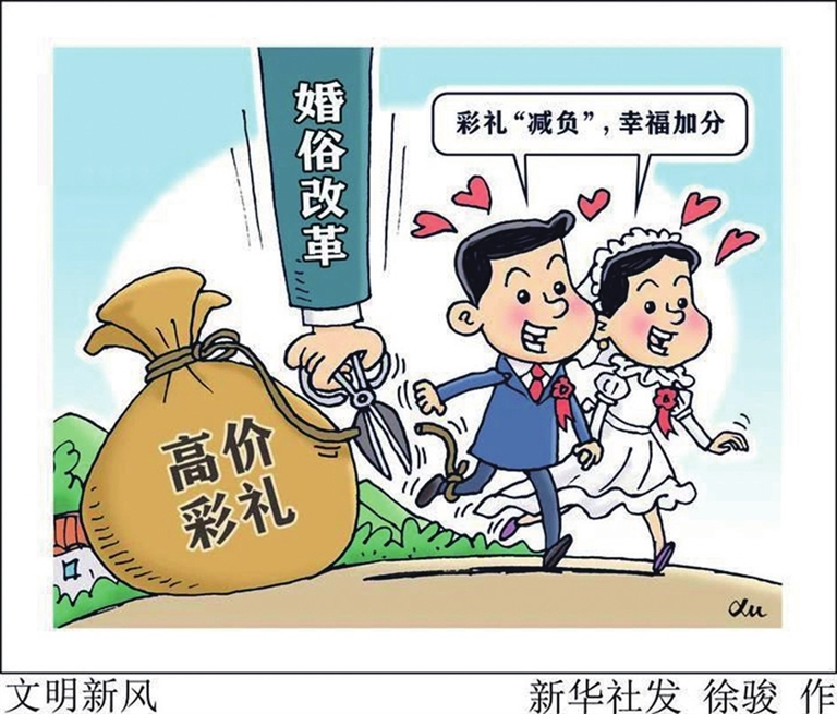 随着经济快速发展和社会剧烈变迁,婚俗也发生巨大变化,一些地方的“天价彩礼”、盲目攀比等婚姻陋习与现代文明社会形成巨大反差。如何为爱“减负”,让婚俗与时俱进,各地不断开展探索。