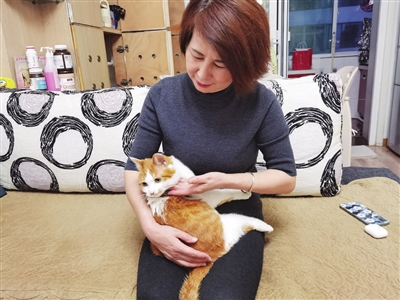 当网格员弯腰安抚时,有居民见到了,主动从家里找来沙发靠垫,让猫咪趴在上面。随即,有居民拿来猫粮喂食。还有人决定收养,并带着它去了附近的宠物医院体检、洗澡、驱虫。当天,“南瓜”就住进了新家。
