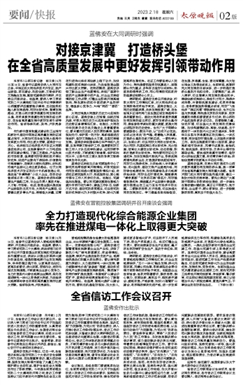 全力打造现代化综合能源企业集团 率先在推进煤电一体化上取得更大突破