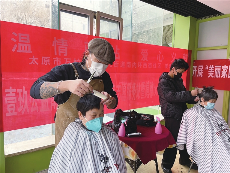 “一年之计在于春,理了发,感觉整个人都精神了。”居民胡大爷看着刚理完的头发,非常满意。2月18日万柏林区消息,南内环西街社区联合壹玖公益志愿者团队在邻里服务驿站开展“温情驿站、爱心义剪”活动,一把剪刀、一把推子、一把梳子、一块围布就组成了一间小小理发室,打通了为老服务的“最后一公里”。 李涛 张莹 摄