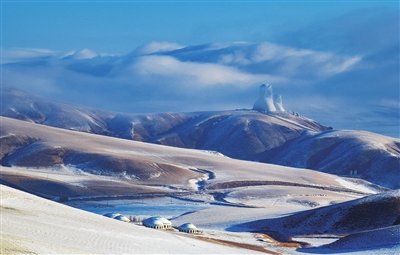 最近,内蒙古自治区霍林郭勒市周边的草原被白雪覆盖,在蓝天和云海的映衬下,犹如一幅美丽的生态画卷。 新华社 发