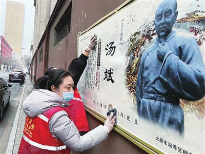 “宣传栏干净了,市容市貌更靓了!”2月17日,铁匠巷居民看到街边墙上的宣传栏,被铁匠巷社区志愿者擦拭得焕然一新,忍不住夸赞。当日,为更好展示社区文明形象,发挥宣传栏“传话筒”作用,铁匠巷社区志愿者对辖区的宣传栏进行集中清洁,并呼吁辖区居民关心创城,参与创城,争做文明市民。 郭晓华 彭谞璇 摄