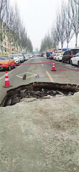 按照市城管局市政设施大排查大整治百日行动的安排,市城管指挥中心展开道路病害的巡查和应急处置。2月23日上午8时许,该中心承龙采集项目部采集员巡查上报,中北高新区钢兴路与钢园南街交叉口南约200米的道路出现路面塌陷。现场观察,塌陷面积近一平方米,塌坑内空洞很深,看不到底,同时相邻路面有大面积下沉迹象。