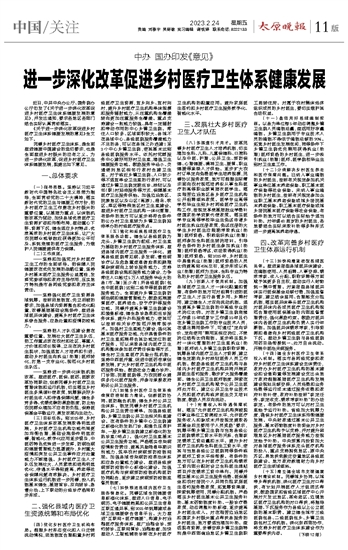 《关于进一步深化改革促进乡村医疗卫生体系健康发展的意见》全文如下。