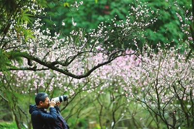 2月22日,摄影爱好者在江苏省昆山市亭林园拍摄梅花。
