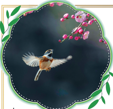 2月18日,在江苏省无锡市管社山庄,一只小鸟在梅花丛中飞舞。