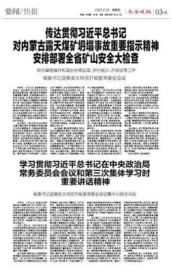 传达贯彻习近平总书记对内蒙古露天煤矿坍塌事故重要指示精神 安排部署全省矿山安全大检查