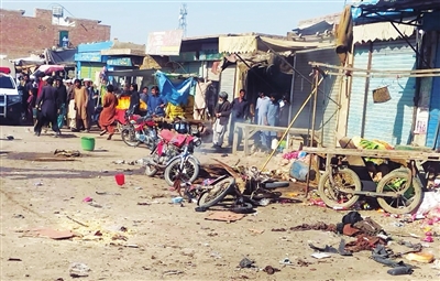 2月26日,人们在巴基斯坦西南部俾路支省的爆炸事件现场查看。新华社 发