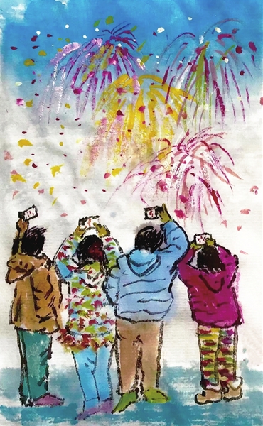 武家庄历来有好闹红火的传统。今年的二月二,村里就有旱船、腰鼓、大头娃娃及甩龙四支队伍参演。傍晚时分,我帮母亲穿戴整齐出门“看热闹”。晚8时许,晋阳湖上空的烟花正点迸放,夜空中,一会儿有金黄的菊花蓬勃怒放,一会儿有雪白的瀑布飞流直下,一会儿如银蛇狂舞,一会儿如天女散花……在近处亮如白昼的路灯和稍远处黑黝黝绿植的映衬下,半个天空立时变得如梦如幻、多姿多彩。十来分钟后,我俯身对母亲说:“我到坝堰上圪转一下!”待母亲“嗯”了一声后,我踱步出门,才发现门前的沿岸快速路上,密密麻麻停满了车。瞅空当拍了两段烟花视频后,匆匆返回母亲身边。她老人家全神贯注并未注意到我回来。我大声对母亲说:“好看吧,大家都在为你过生日哩!”母亲高兴地连说几个“好!”
