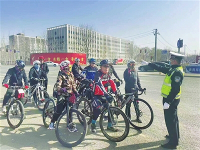 经了解,这是一个平均年龄在60岁以上的老年骑行团,经常结伴锻炼身体。民警给老人讲解了在机动车道内骑行和闯红灯的危害,叮嘱大家一定要遵守交通法规,安全骑行。老人们纷纷表示,今后一定会注意交通安全。考虑到这一路段车多、路况复杂,民警又驾车将骑行团护送到安全路段,才放心离开。