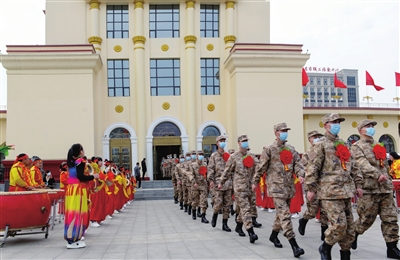 带着亲人的嘱托,肩负光荣使命,我市新兵踏上征程,奔赴军营。3月17日,省城军民欢送新兵入伍大会在工人文化宫举行。 记者 牛利敏 邓寅明 摄