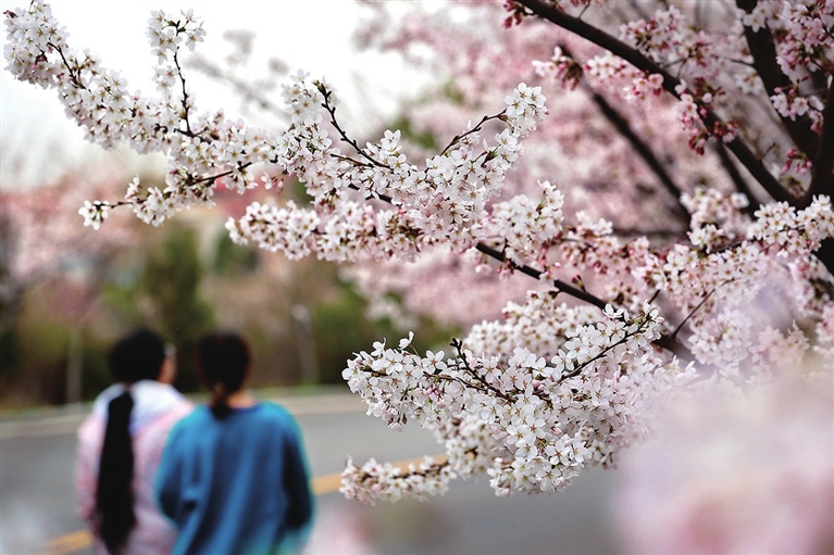 漫步在樱花道上,抬头望去,花枝如伞盖在天空中铺散开来,摇曳生姿,酝酿一冬后,怒放的樱花如霞似粉。一阵微风吹过,无数花瓣雨顺势飘落,漫步其间,恍若置身花海,脚下则仿佛铺了一条粉白相间的地毯。为了不错过这美妙的春日图景,大家争先恐后在花树下留影。“樱花园只是玉泉山城郊森林公园的一部分,最初时,樱花园内只有十多个品种,近年来新增加了不少,大多数从日本和我国的杭州、昆明、福建以及东北地区引进,品种达70余种。”相关负责人介绍,经过几年的修剪和养护,引进的樱花长势更好,花开得更加茂盛。