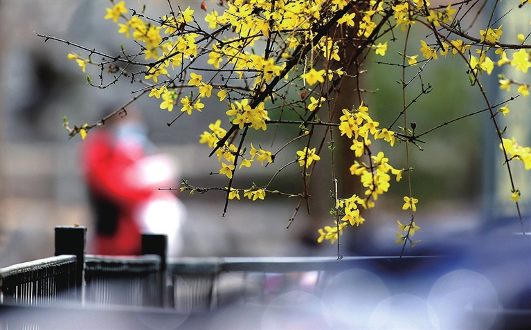 三月天,暖阳下,风里带来丝丝暖意,细心的人儿总会在不经意间发现,路边的花丛中,公园的角落里,绽放出点点的黄……没错,这就是春天的信使——迎春花,嫩黄芬芳仿佛在告诉大家,春天来了。