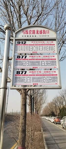 曹先生是第一次在这个路口乘车,对途经此处的公交车不太熟悉。看到站牌后,更加令他疑惑。曹先生通过手机查询才发现,原来,877路公交车分为内环和外环两趟路线,公交车身上标得很清楚,但是站牌上没有标明。他说:“对于不会使用手机查询的乘客来说,确实不太方便,希望能把内环和外环标清楚。”