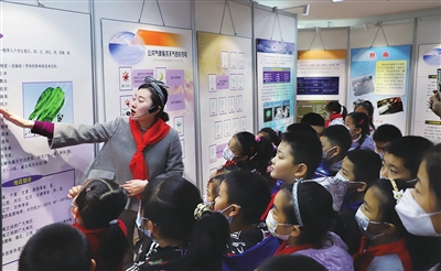 3月18日,市气象局等单位主办的“3·23”世界气象日科普宣传活动在太原市青少年宫少年科技城举行。现场,专业老师通过向观众讲解气象知识,增强公众对气象的理解与认识。 张昊宇 摄