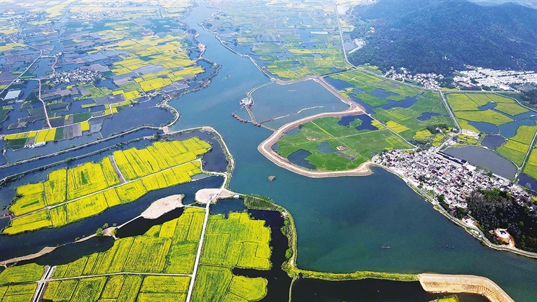 近日,安徽省芜湖市三山区峨桥镇响水涧村的油菜花迎来盛花期。金黄的油菜花田错落有致分布于乡间水道旁,形成一幅幅美丽的乡村画卷。新华社 发