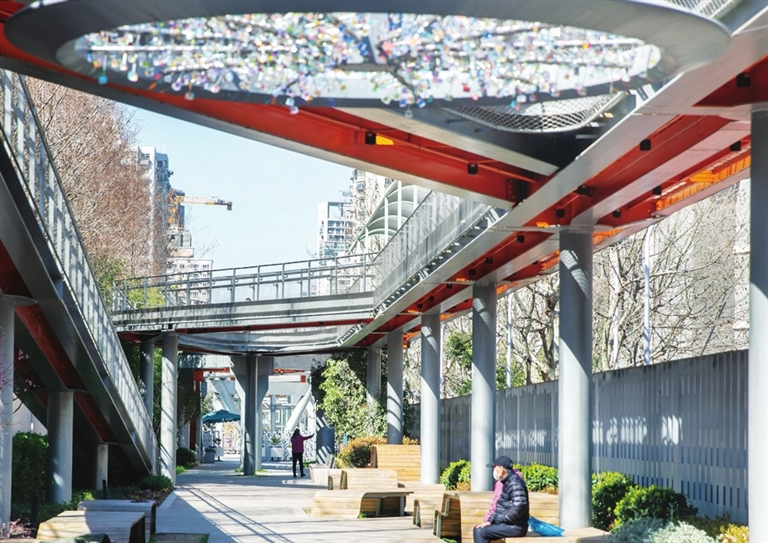 这是3月13日拍摄的位于上海市普陀区的高线公园——百禧公园。