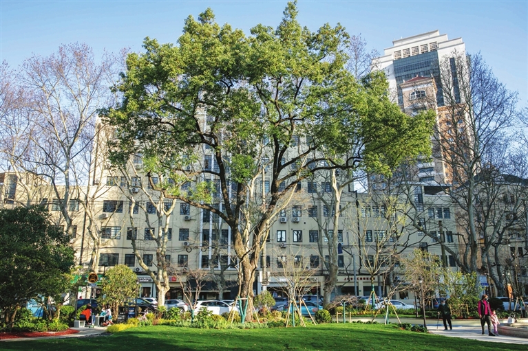 这是3月14日拍摄的上海市徐汇区衡山路旁的一处口袋公园。