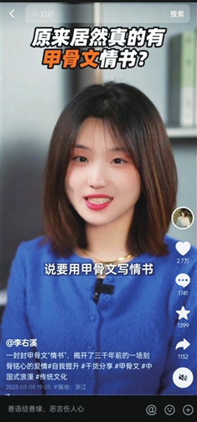 视频在网络上广泛传播,这个被吐槽最“冷门”的专业逐渐引起关注和讨论,李莹满是意外和惊喜:“从来没想到,会有这么多人对甲骨文感兴趣!有很多家长和老师留言,希望通过学习甲骨文了解中国文化。”