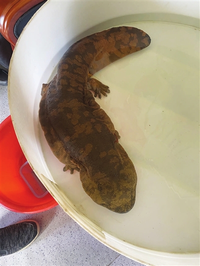 来电者是一位物流公司的老板,4年前一位大车司机送给他一条人工养殖的娃娃鱼,于是他开始养殖。目前,这条娃娃鱼已经长到1米长、15公斤重,身体状况良好。晋源区自然资源局工作人员赶到现场后,经养殖人提醒“这么大的娃娃鱼会咬人”,便戴好手套,在保证自身安全的情况下,做好娃娃鱼转移工作。随后,工作人员联系太原动物园进行捐赠移交。目前,这个“大家伙”已移交至太原动物园人工养殖。