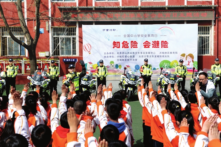 3月28日,省青少年事业发展中心、市交警支队等单位主办的全国中小学生”安全教育日“主题活动在和平小学举行。交警通过案例分析、游戏训练、现场提问等方式,强化学生安全意识。 牛利敏 摄