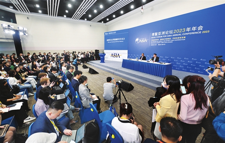 28日上午9点半,距离新闻发布会开始还有半个小时,博鳌亚洲论坛新闻中心海鸥厅已经人头攒动,座无虚席。